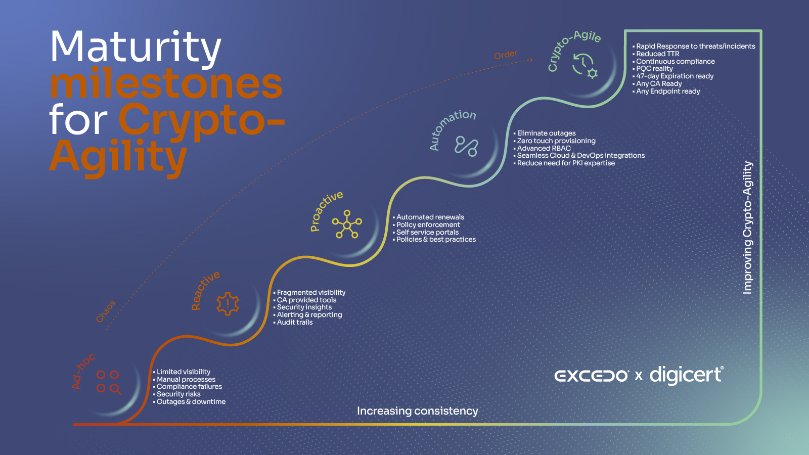 Digital transformation has dramatically increased the number of identities organizations must secure - users, devices, applications, APIs, and workloads. At the heart of this trust ecosystem lies Public Key Infrastructure (PKI). But PKI alone is no longer enough. As highlighted in Excedo’s perspective on digital trust, certificate automation has become a business imperative, not just an IT improvement. With certificate lifespans shrinking and threats evolving rapidly, organizations must move beyond managing certificates to becoming crypto-agile. This blog explores what crypto-agility means, why it matters, and how organizations can evolve through a structured maturity journey.